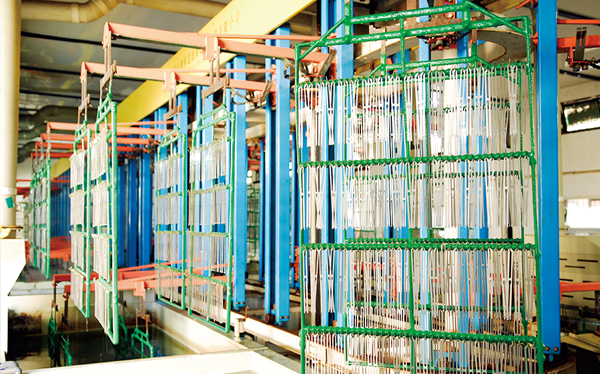 公司現(xiàn)有固定資產(chǎn)6000余萬元,員工300余人,現(xiàn)具有年產(chǎn)噴氣異型筘12萬米,劍桿筘32萬米,噴水筘5萬米,綜框20萬片,鋼片綜2億片,停經(jīng)片1.5億片, 織軸1.2萬套的生產(chǎn)能力。公司“越泉”商標被評為“中國馳名商標”。公司通過ISO9001 :2015國際質(zhì)量體系認證,ISO14001:2015國際環(huán)境管理體系認證,ISO45001:2018國際職業(yè)健康安全管理體系認證,噴氣織機用鋼筘和織機用鋁合金綜框獲得“浙江制造”品牌認證,公司擁有自營進出口權(quán),產(chǎn)品暢銷全國并遠銷印度、巴基斯坦、土耳其、埃及、哥倫比亞、意大利等國家和地區(qū)。